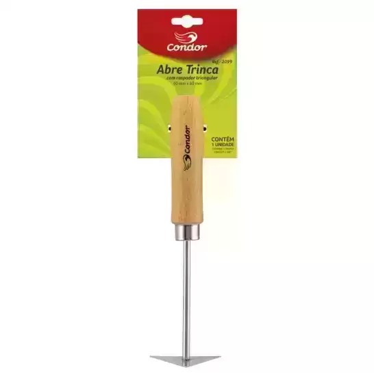 Com lâmina reforçada de aço carbono e cabo de madeira, o Abre Trinca Condor – REF 2099 é a ferramenta ideal para abertura de trincas e rachaduras em paredes de alvenaria.